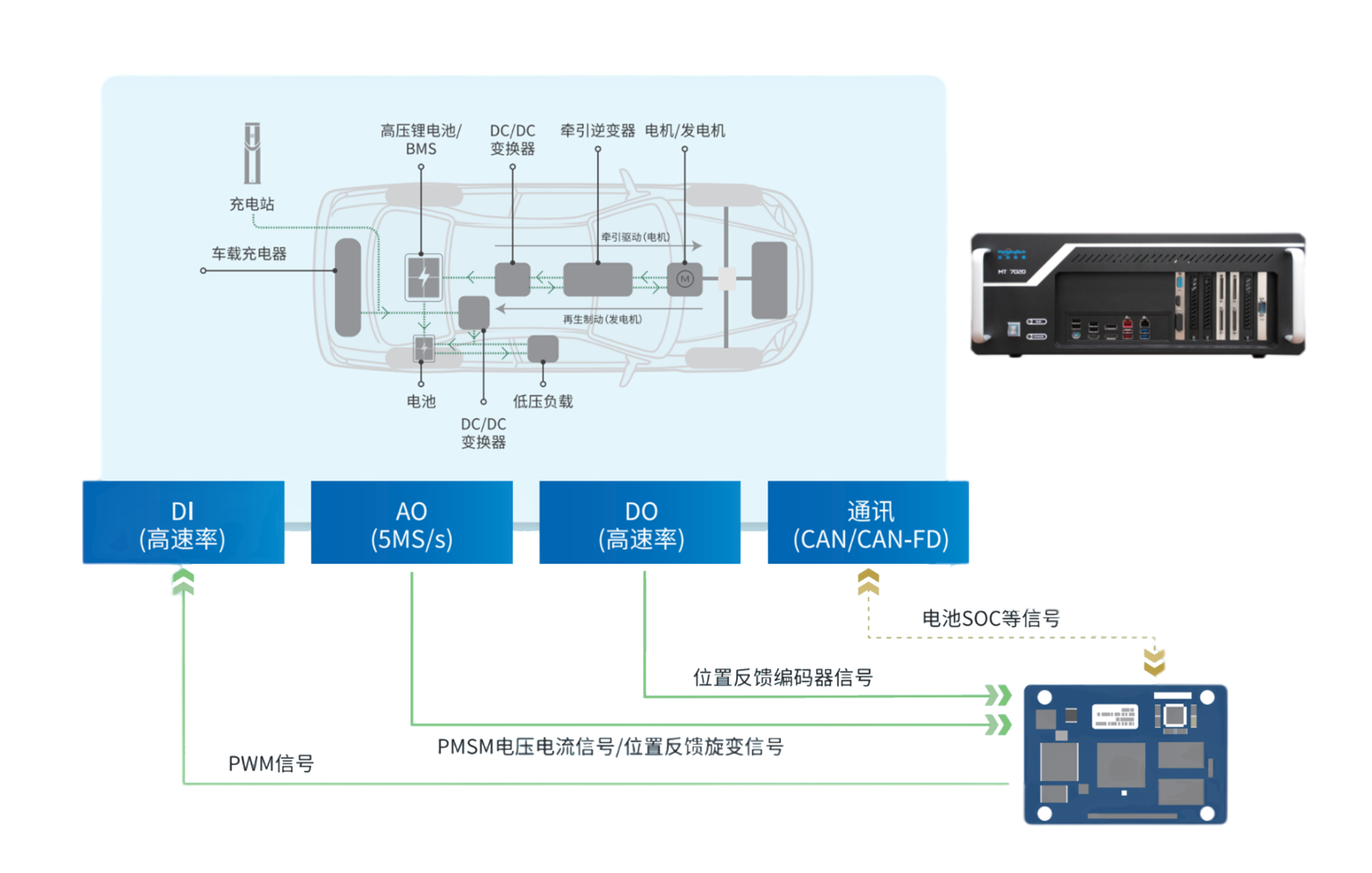 本次展会,上海远宽能源携MT 7020 通用实时硬件、MT 1070快速控制原型机参会,为与会的相关企业与高校展示了电驱控制器硬件在环解决方案。